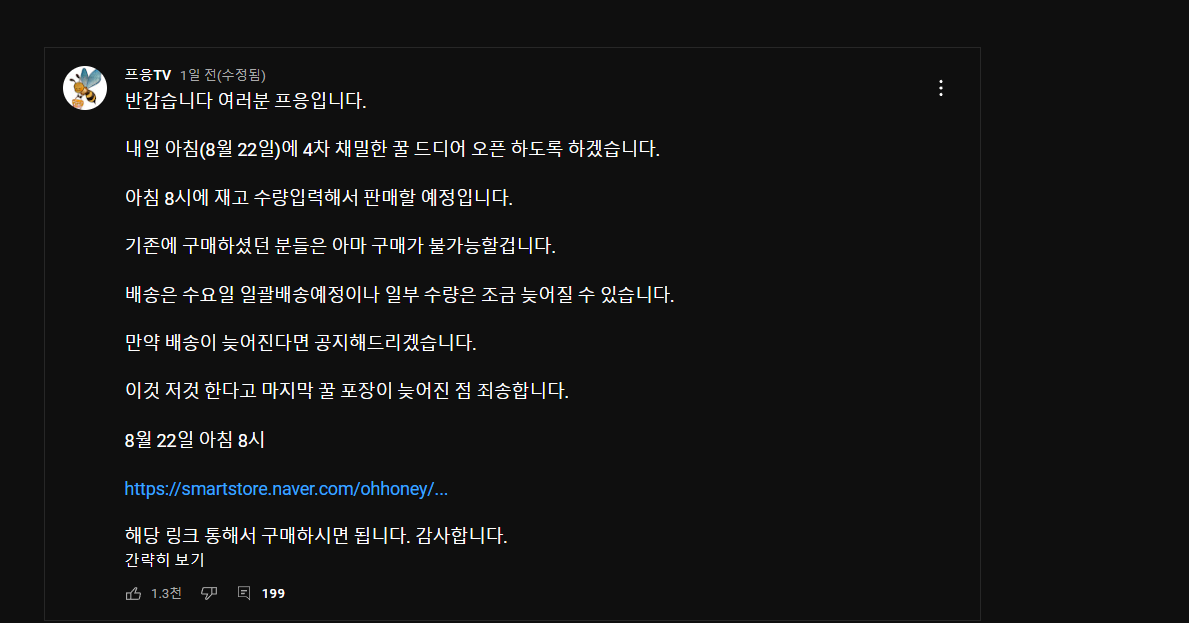 오허니 농장(프응 스토어팜 이름)의 구매링크를 프응이 먼저 공개해놓고 시작한다..